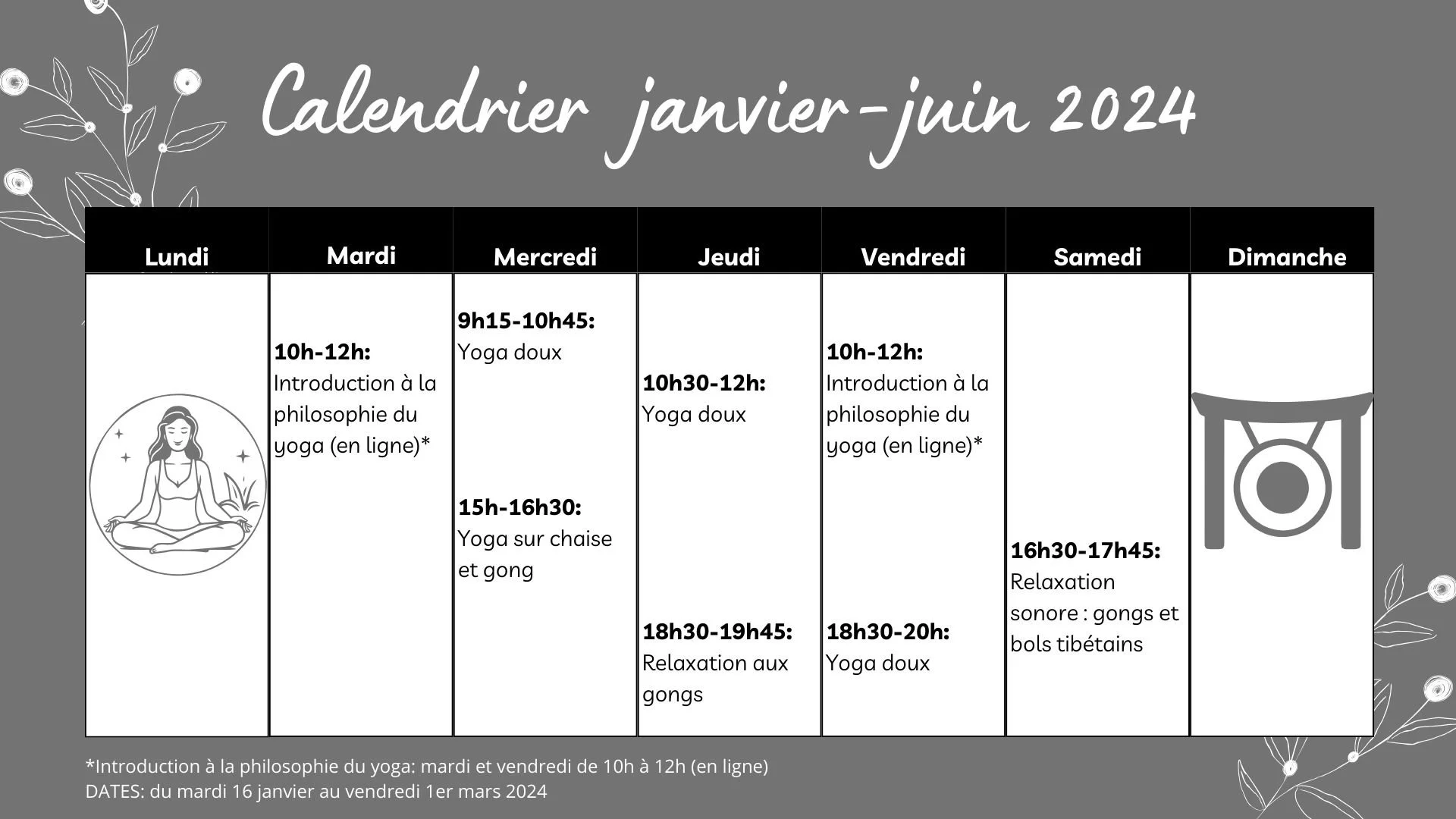 FORFAIT 10 SÉANCES (les forfaits sont valables indifféremment pour le yoga ou les gongs)