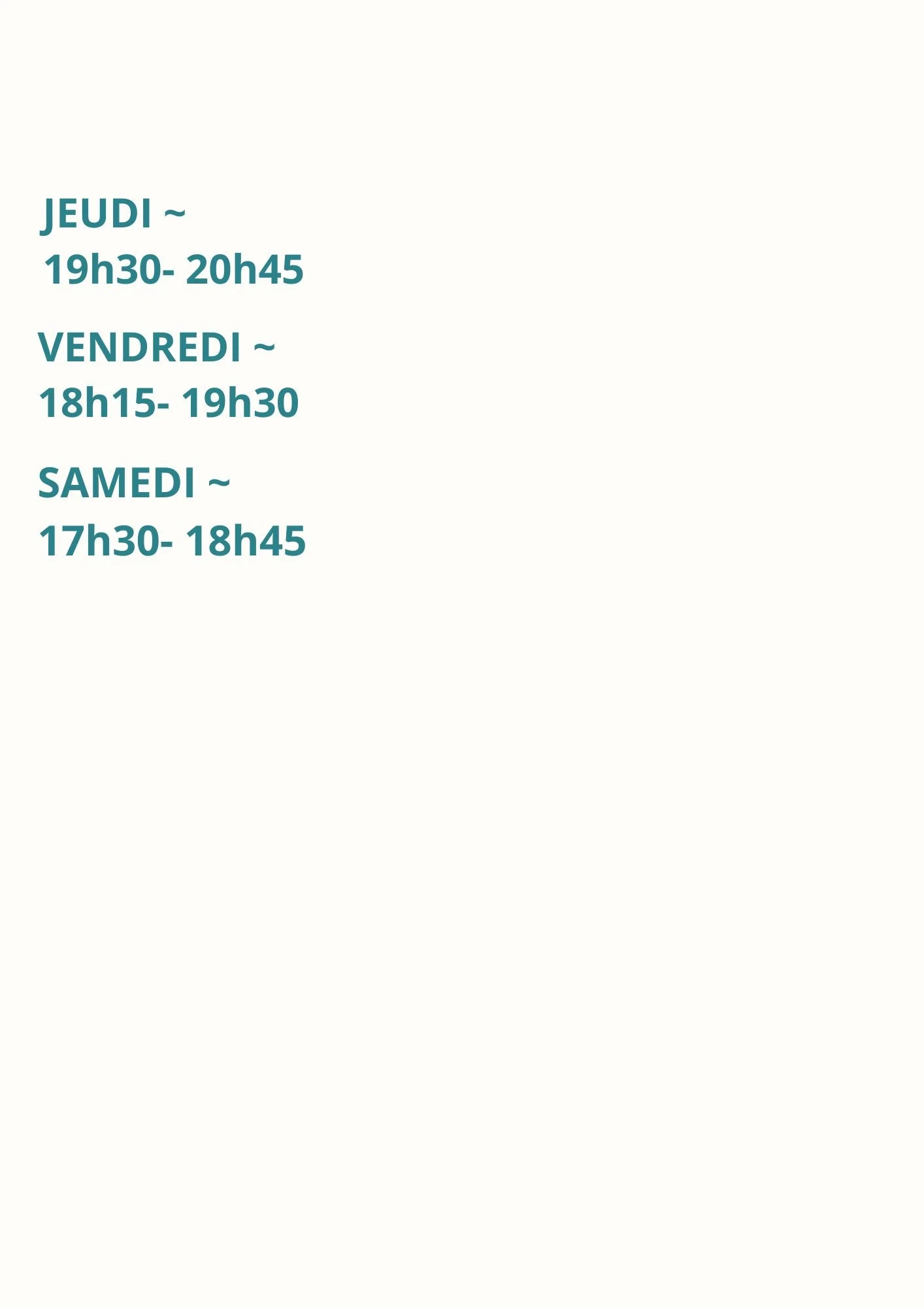 Planning des cours et tarifs